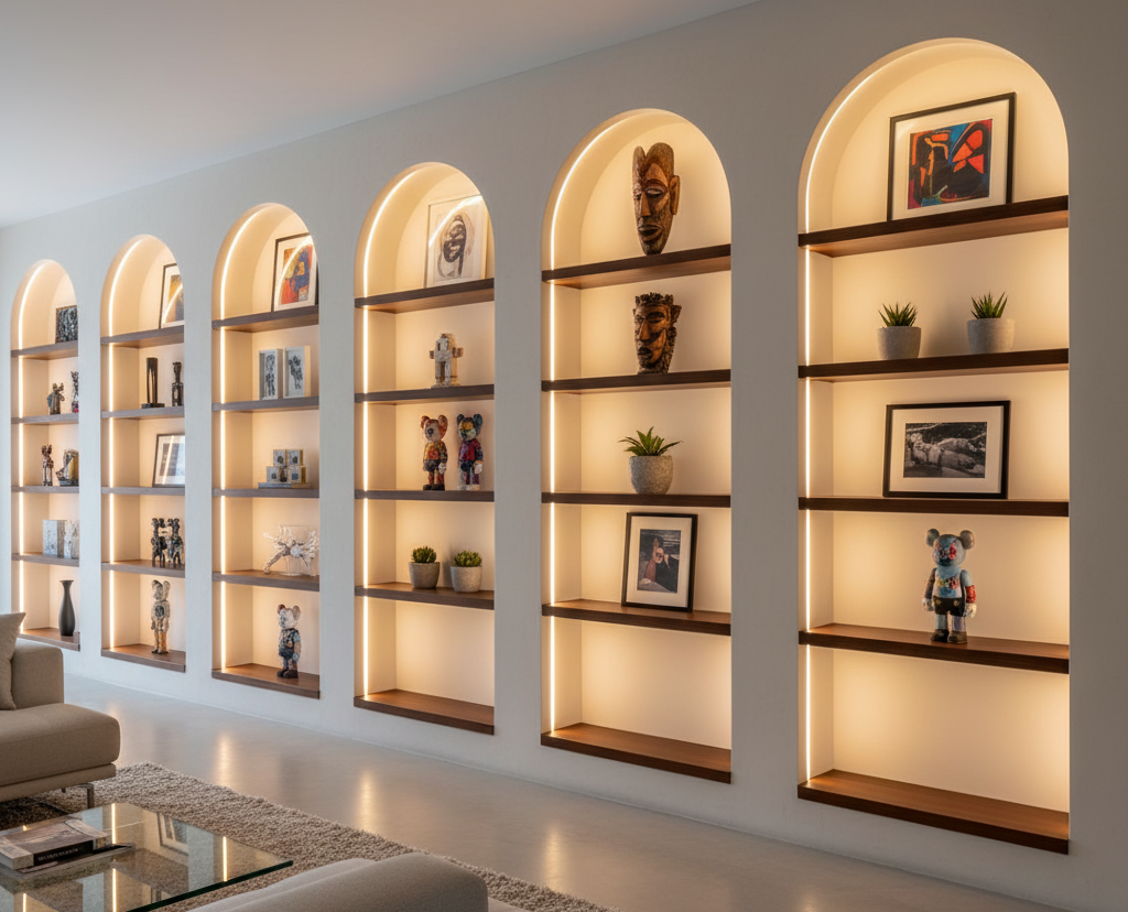 En jouant sur la lumière grâce à des rubans LED, les arcs lumineux, voûtes et courbes LED deviennent de véritables éléments de design, capables de transformer un mur, un plafond ou une niche en œuvre lumineuse.